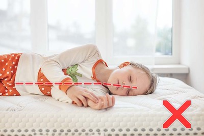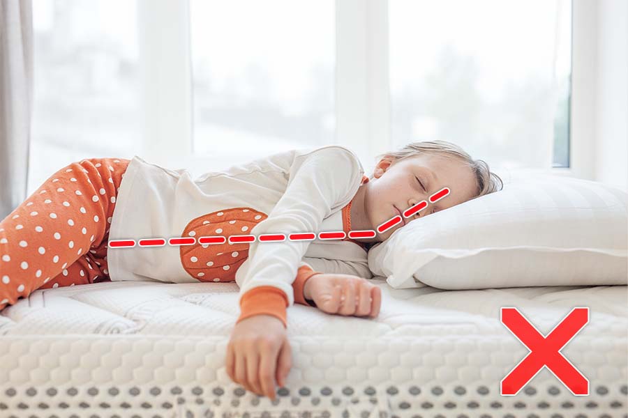 Otóż oś kręgosłupa na całej jego długości powinna być prosta - a kręgosłup szyjny powienien być przedłużeniem jego osi. Poniżej prezentujemy prawidłowo dobraną poduszkę do wzrostu i wagi dziecka - można zwrócić uwagę na prosty kęgosłup szyjny: